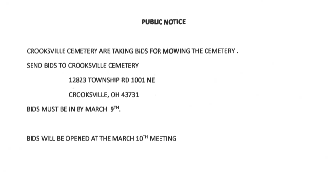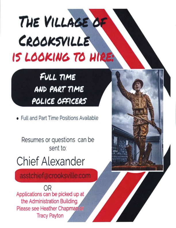 The Village of Crooksville, Ohio is an Equal Opportunity Employer, USDA is an equal opportunity provider, employer, and lender.